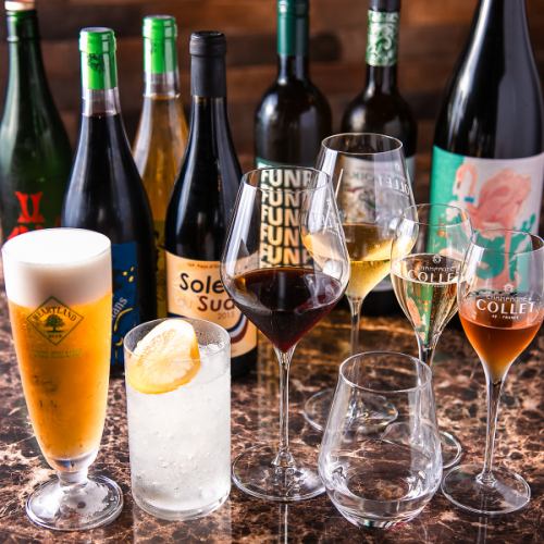 当店自慢の料理と相性抜群のお酒を、リーズナブルな価格でご提供!特にワインは、オーナー自らが厳選し直輸入したスパークリングや赤・白を20種類以上ご用意。料理の美味しさを引き立てるお酒とのマリアージュは格別。軽く一杯楽しみたい時から、しっかり飲みたい夜まで、女子会やデートなど様々なシーンでご利用いただけます。